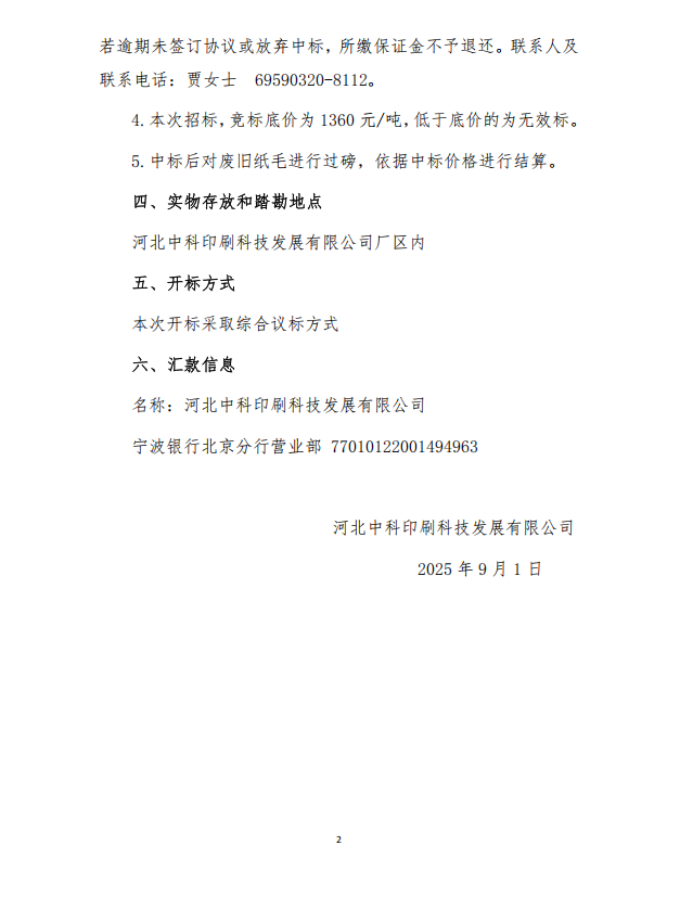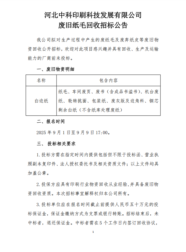 河北大港澳安卓下载安装科技发展有限公司废旧纸毛回收招标公告